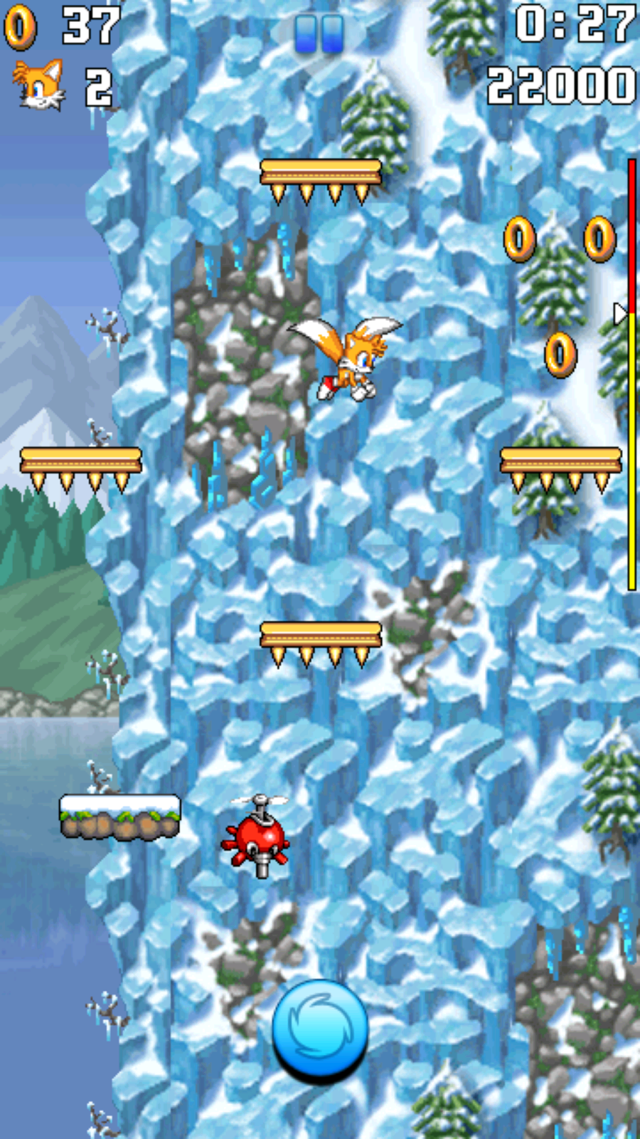 Exclusive to the Revival mod are 2 hidden buttons above the arrows. Touch above the arrows to move the character and perform a double jump at the same time.
