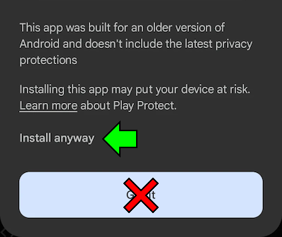 Sometimes, when trying to install an application, you may encounter an "Unsafe app blocked" message. When this occurs, press "Install anyway" to proceed.