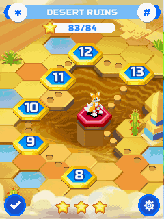 The game has 4 zones (Green Hill, Desert Ruins, Lava Mountain and Sky Sanctuary) and playable characters can be unlocked during the game progression.