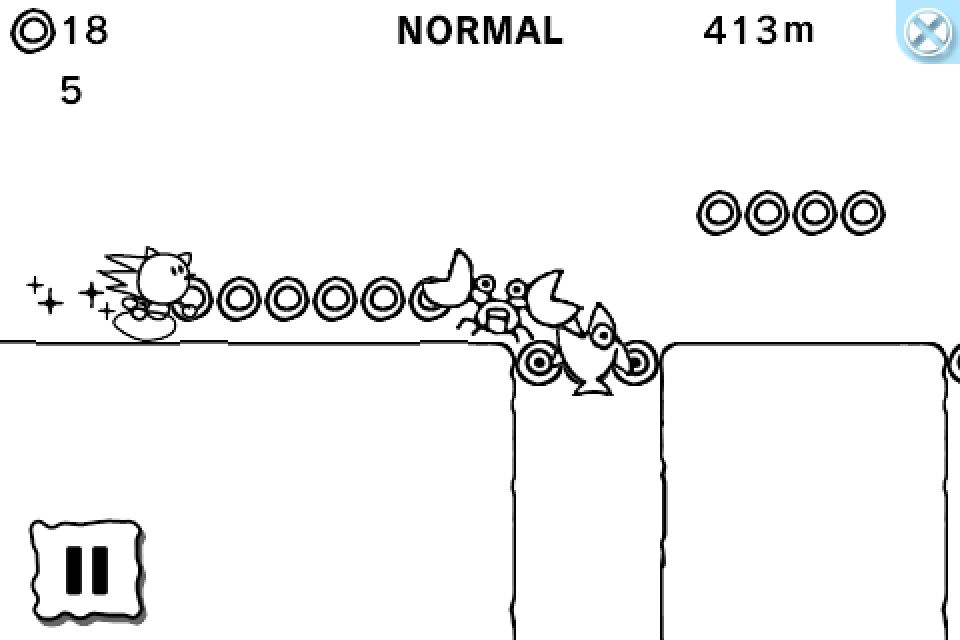 A 2D side-scroller platform game in a hand-drawn doodle style. In this game, take control of Sonic by jumping over obstacles and defeating Badniks like Crabmeat and Chopper as he advances his way through an endless level.