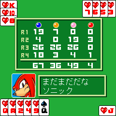 A Sonic themed Hearts card game simulator. The player plays as Sonic and competes against Tails, Knuckles, and Amy.