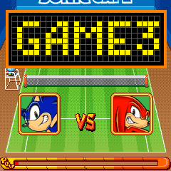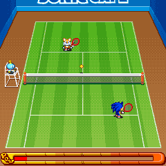 A Sonic the Hedgehog tennis game. The player plays as Sonic and faces off against other Sonic characters, including Tails, Knuckles, and Amy.