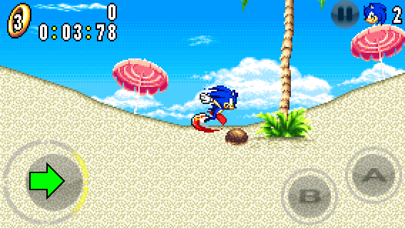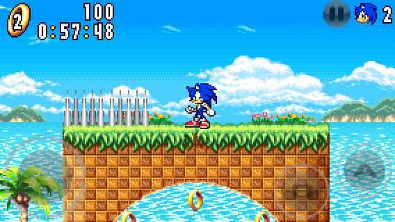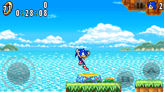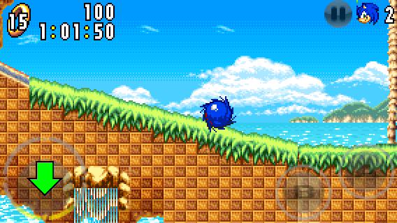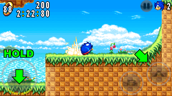 Hold down DOWN on the circle pad and press the A button to perform the Spin Dash. Then, release DOWN to propel you forward.