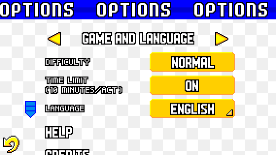 Sonic Advance Mobirev introduces a brand-new options menu structure with options now categorized into different option pages. This section explains the different pages and their available options.