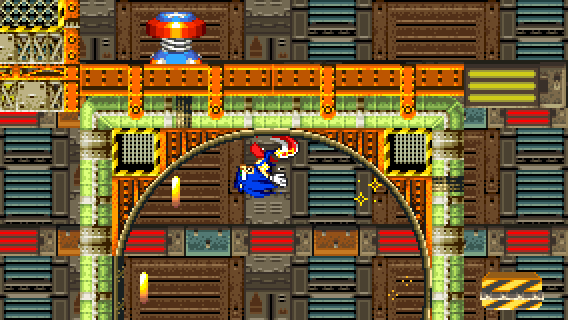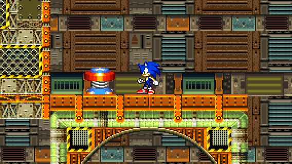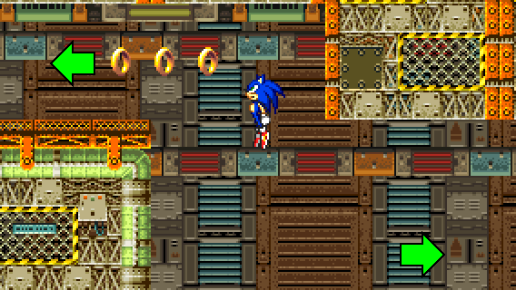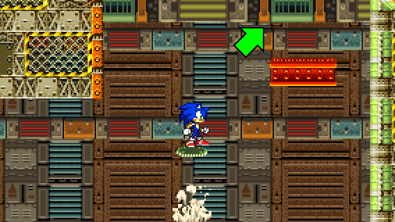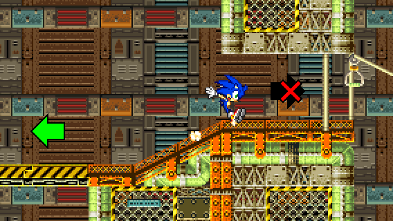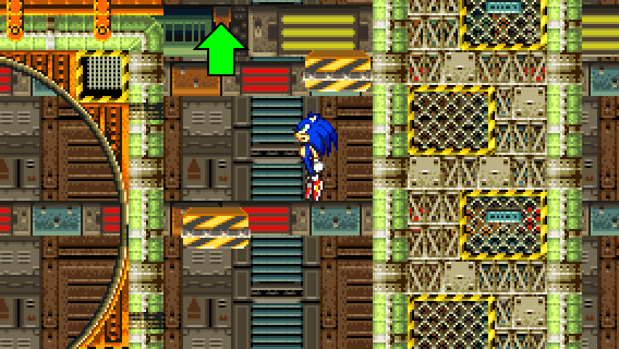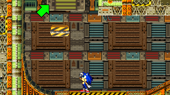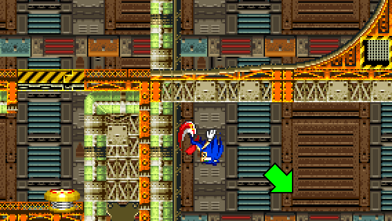 After descending off the wall or after jumping on the yellow/black platform from below, you need to go to the right above, either by taking momentum from a Spin Dash, by flying or climbing.
