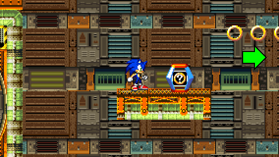 Then, after traversing the second loop, move to the right when in the air. If you have landed on the platform with the ? Ring item box, follow the rings by jumping.