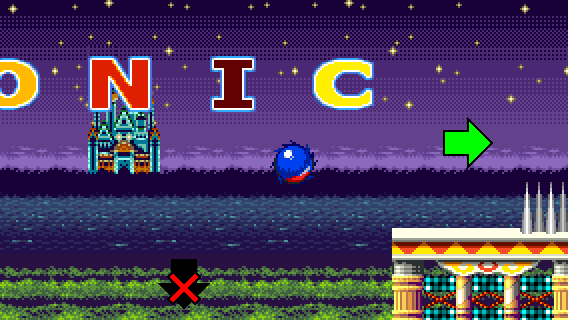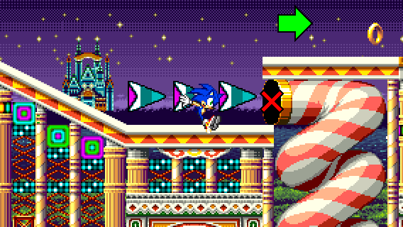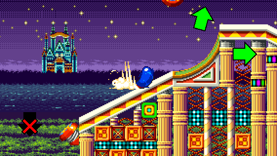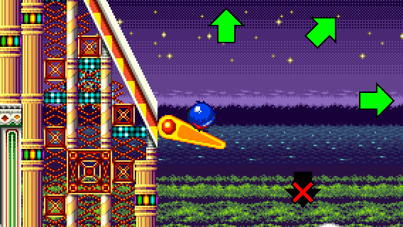 If you fell off during RECOVERY 1 and you don't want to take the flipper, you can still reach the pinball slide by taking momentum from a Spin Dash to the right.