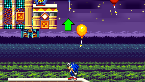 Then, look above and you will see floating balloons and an Invincibility item box.