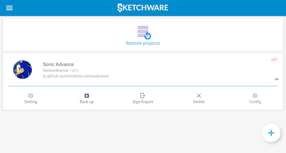 There are multiple options to choose from. You can configure certain settings, back up the project, sign the .apk file or delete the project.