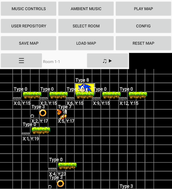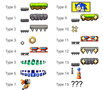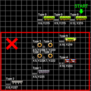 In the Map Editor, the stage layouts are represented by objects. Each object has its type number and coordinates.