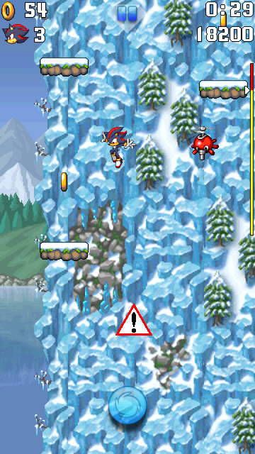 If you land on a higher platform correctly, Shadow will jump from platforms to platforms even quicker.