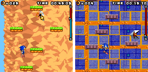You take control of Sonic in vertical stages while jumping from platform to platform, collecting rings and defeating badniks.