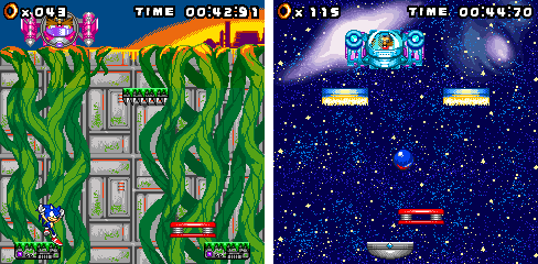 The goal is to reach the top of the stage, with Dr. Eggman sometimes waiting on top.