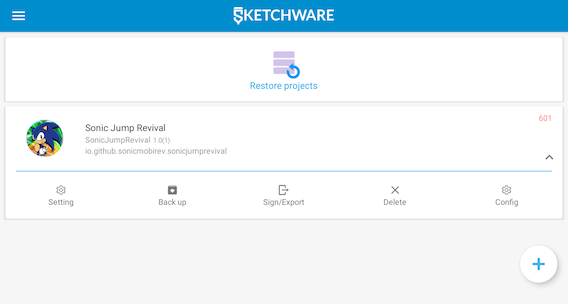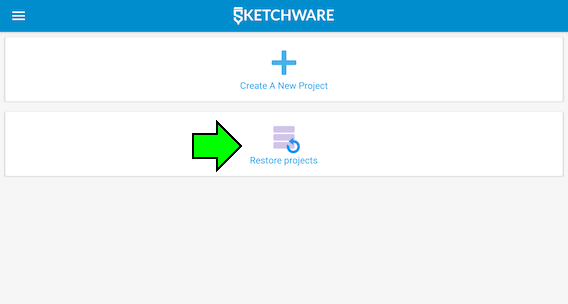 In Sketchware Pro, select "Restore projects" and find your .swb file you have created.
