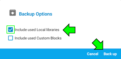 The Back up menu allows you to back up and save your project on your device. The backed up project is located as a .swb file in ".sketchware/backups/project name".
