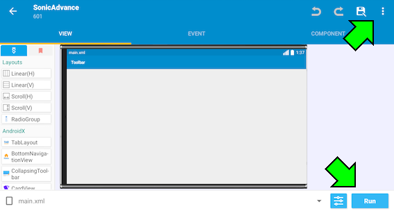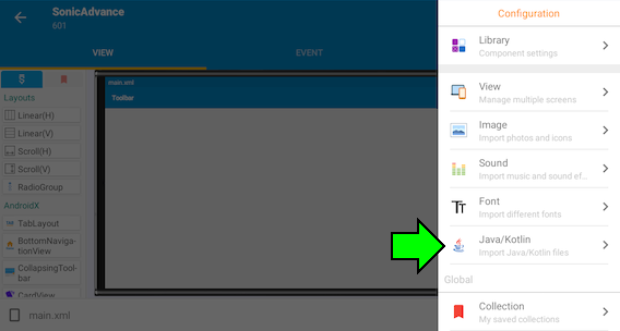 After entering the project, you will be granted will a vareity of creative options from Sketchware Pro.